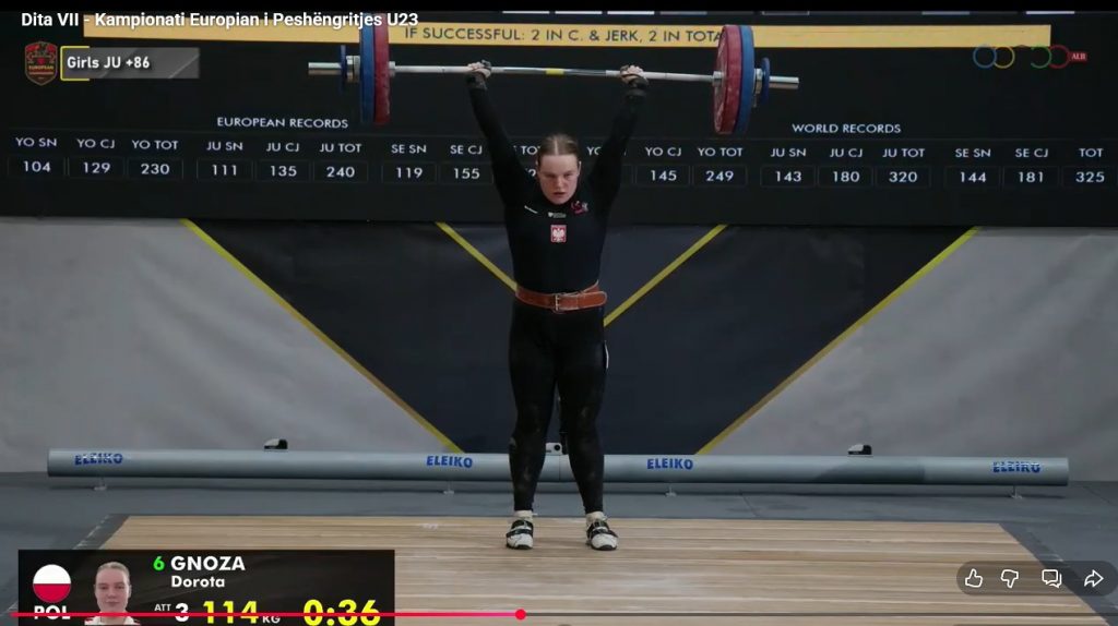 Dorota Gnoza została siódmą sztangistką Europy kategorii wagowej +86 kg juniorek w podnoszeniu ciężarów. Juniorki to zawodniczki mające od 18 do 20 lat. Dorota to najmłodsza sztangistka tej kategorii wagowej. Zaledwie szesnastoletnia Dorota rywalizowała ze sztangistkami o 4 lata starszymi od siebie.