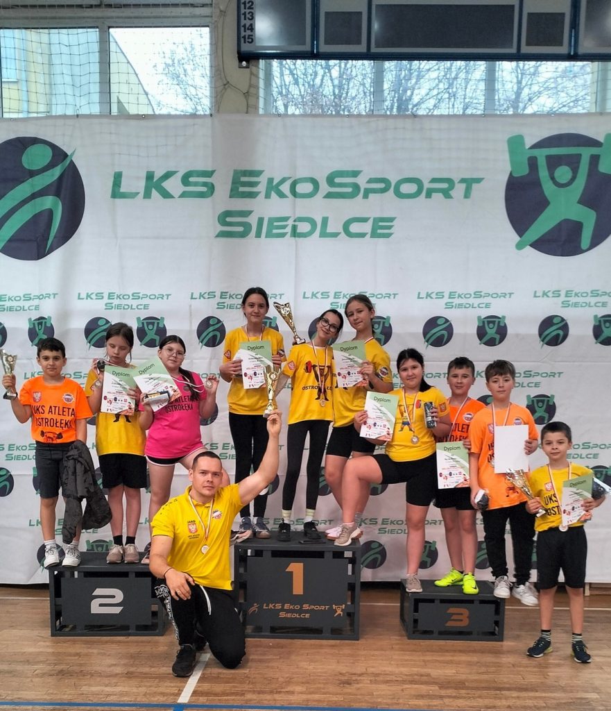 W dniu 8 listopada nasza ekipa wieloboistów startowała w Mazowieckim Wieloboju Atletycznym. Organizatorem imprezy był LKS Eko-Sport Siedlce i tam właśnie udaliśmy się na zmagania atletyczne. Dzieci do 10 i do 12 lat startowały w trzech konkurencjach ogólnorozwojowych: bieg wahadłowy, rzut piłką lekarską oraz trójskok, a także w rwaniu i podrzucie na technikę.