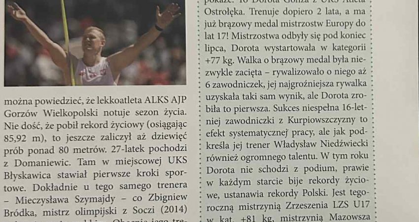 W środę 30 lipca, młoda sztangistka Dorota Gnoza, zawodniczka ostrołęckiego klubu UKS Atleta zdobyła w Madrycie brązowy medal Mistrzostw Europy w dwuboju. Dorota w kategorii +77 kg U17, osiągnęła łączny wynik 199 kg (89 kg w rwaniu i 110 kg w podrzucie). Została także powołana na zgrupowanie kadry narodowej juniorek U20, jako jedna z dziesięciu […]